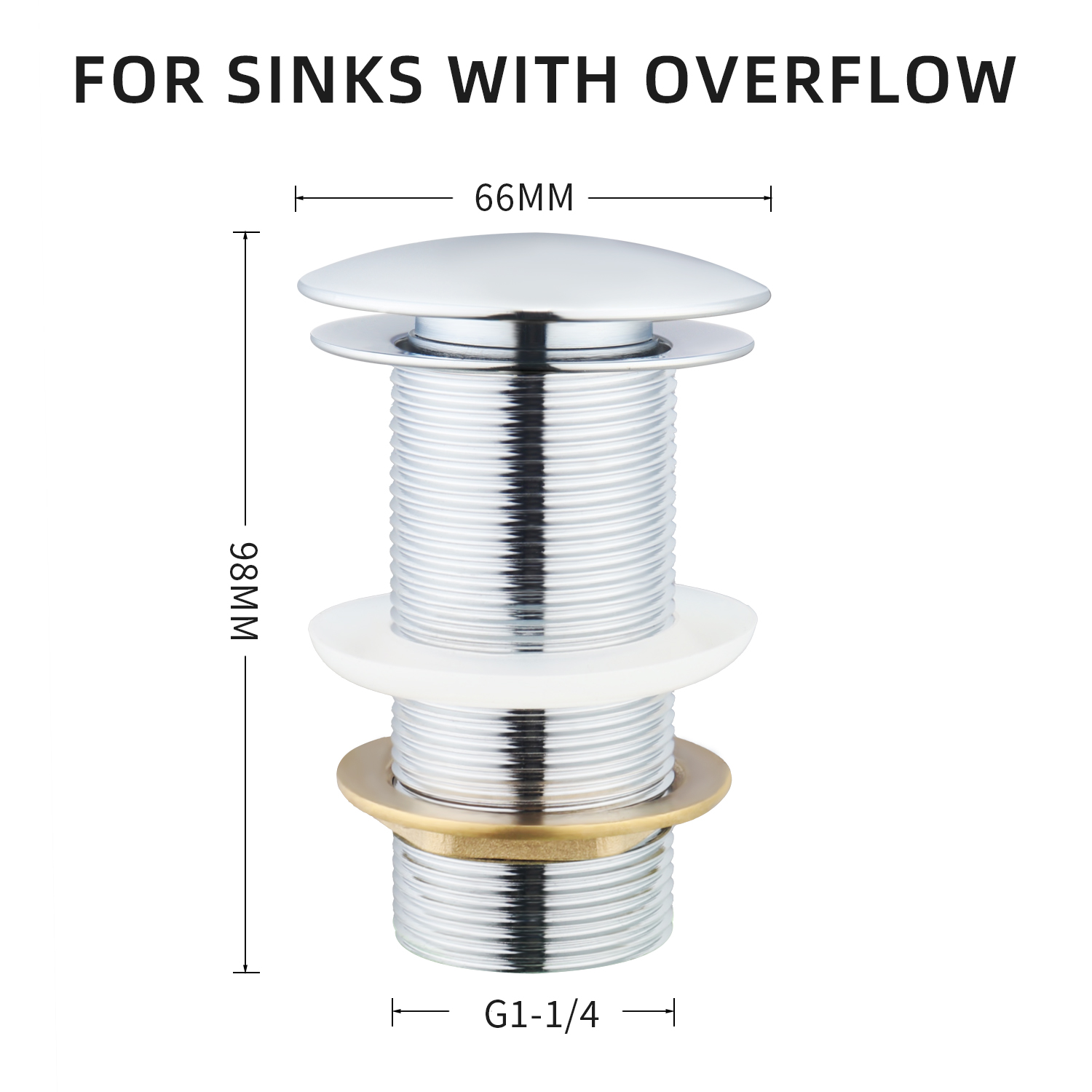 NAME:POP-UP BASIN WASTEColor: CHROME,Material: BRASSSIZE:G1-1/4"*Φ66*98MM