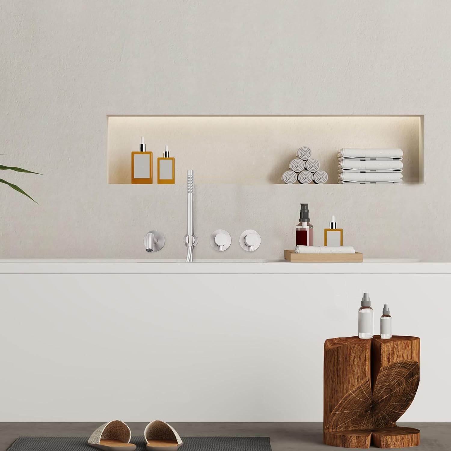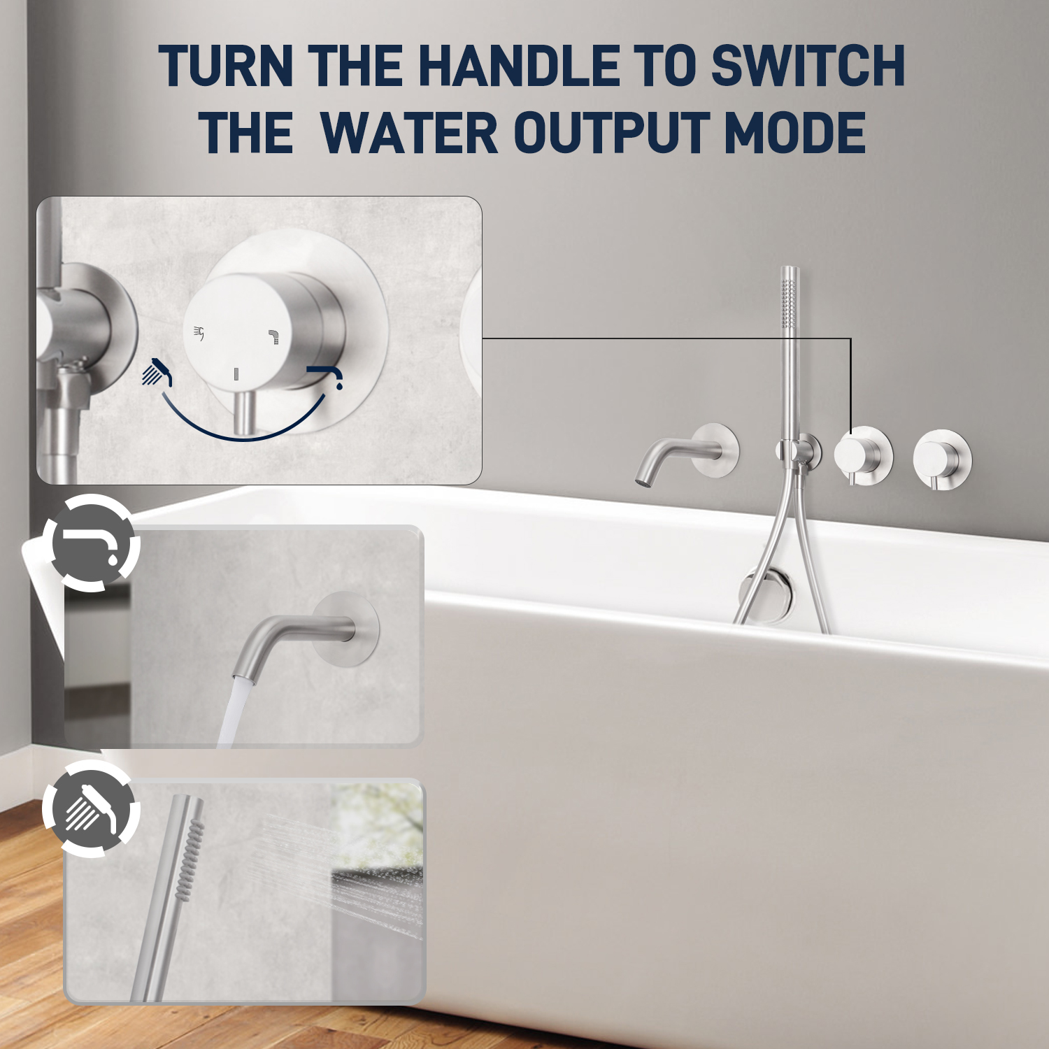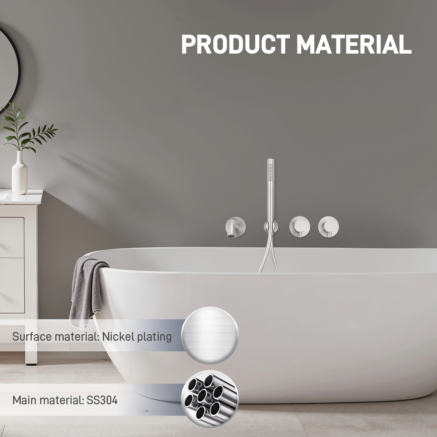 NAME: BATH MIXER SETCOLOR:BRUSHED NICKELMATERIAL:SS304